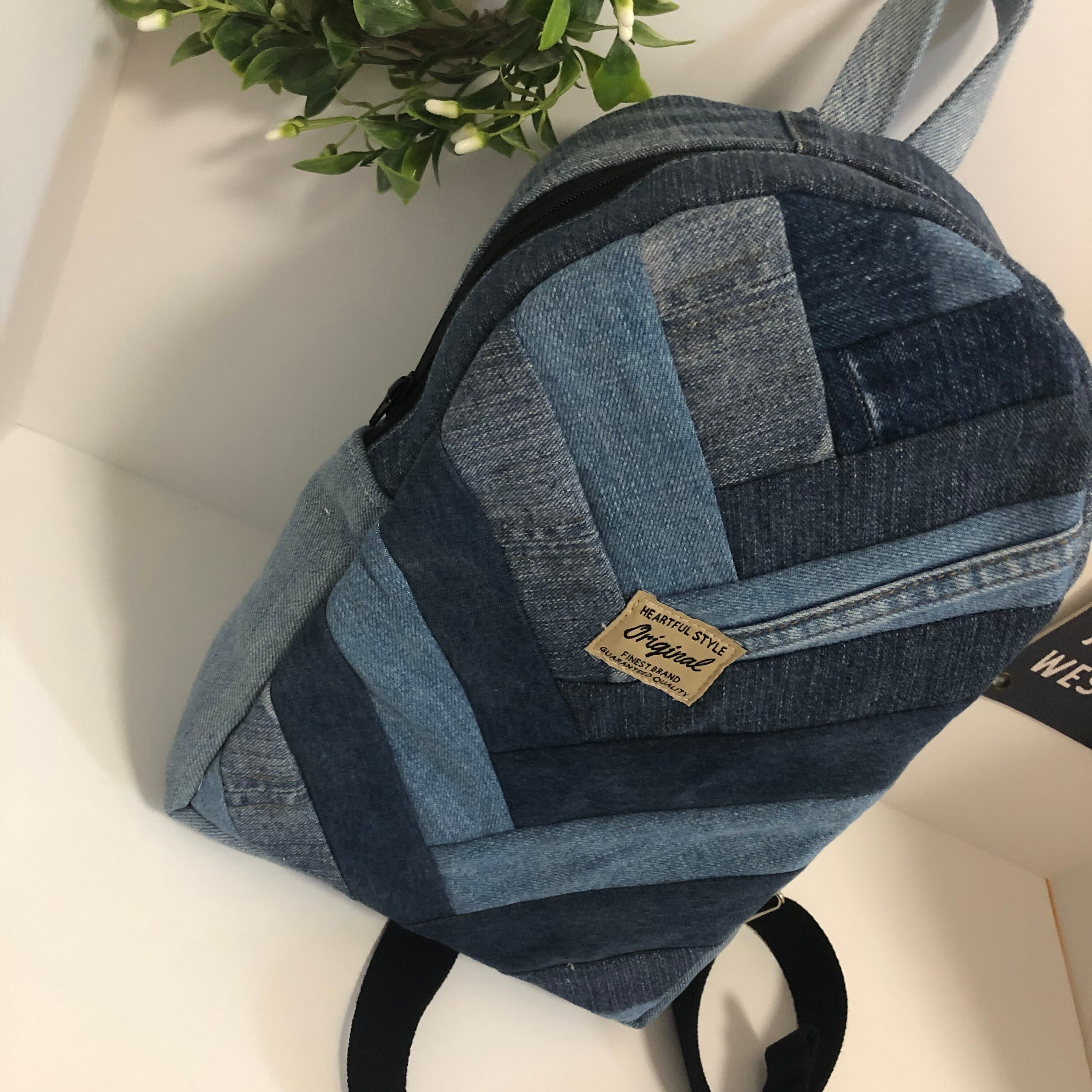 usedデニムにパッチワークを施しボディバックに仕上げました´`*