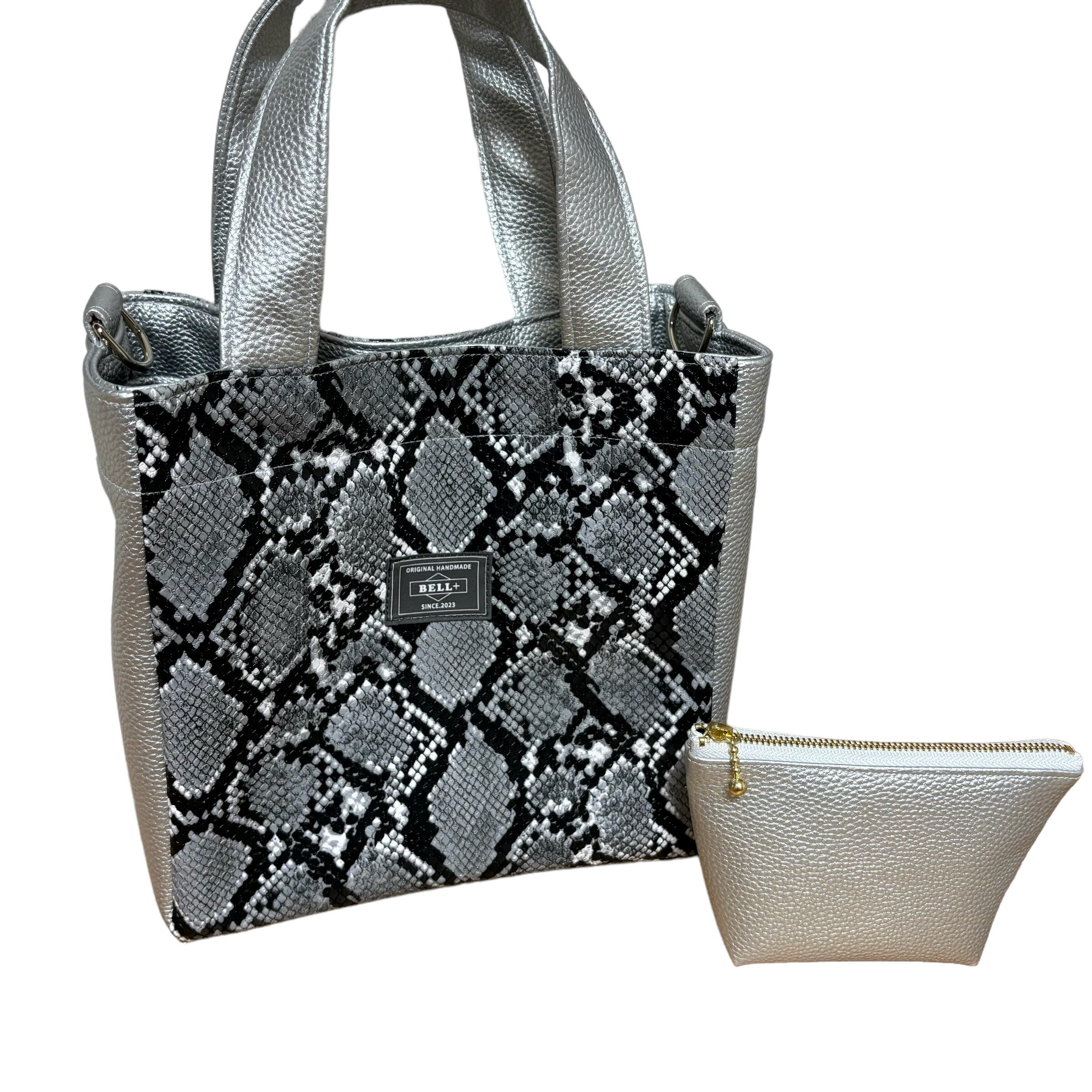パイソン×シルバートートバッグ ミニポーチつき